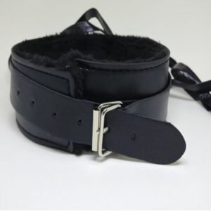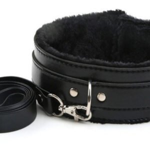 Coleira Bondage com Guia – Couro fake e pelúcia