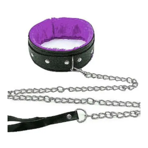 Coleira com Guia em Corrente BDSM Luxo em Couro Sintetico –