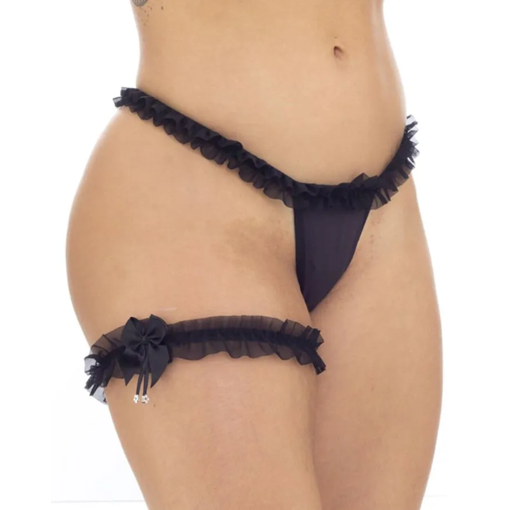 Malicia – Conjunto Croped Bojo e Aro em Cirre com Fio, acomp. Saia, Calci e Ligas – 2749 –
