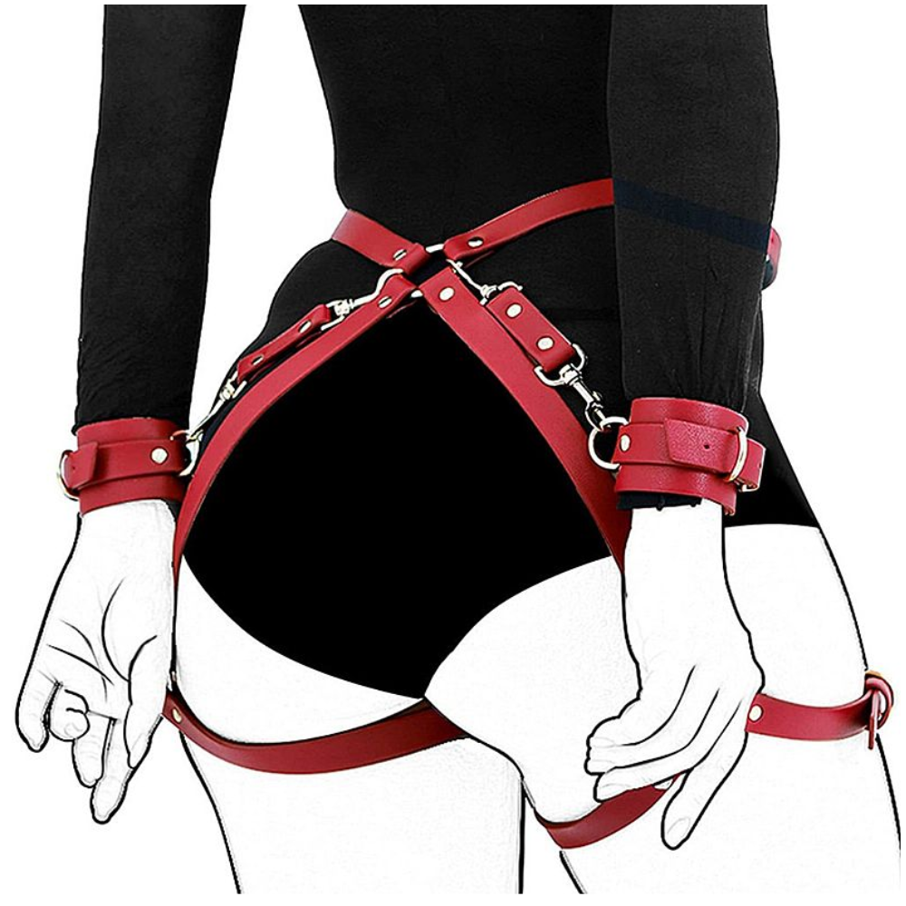 Harness de cintura com Algemas – Mostre quem está no comando com esta peça impressionante. Um modelo muito sensual, diferente e arrasador! Luxo e requinte em seu cenário BDSM, designer moderno com aspecto visual semelhante ao couro e extremamente confortável. Modelo com regulagem na cinturas e nas coxas com fecho de fivela e algemas removíveis.