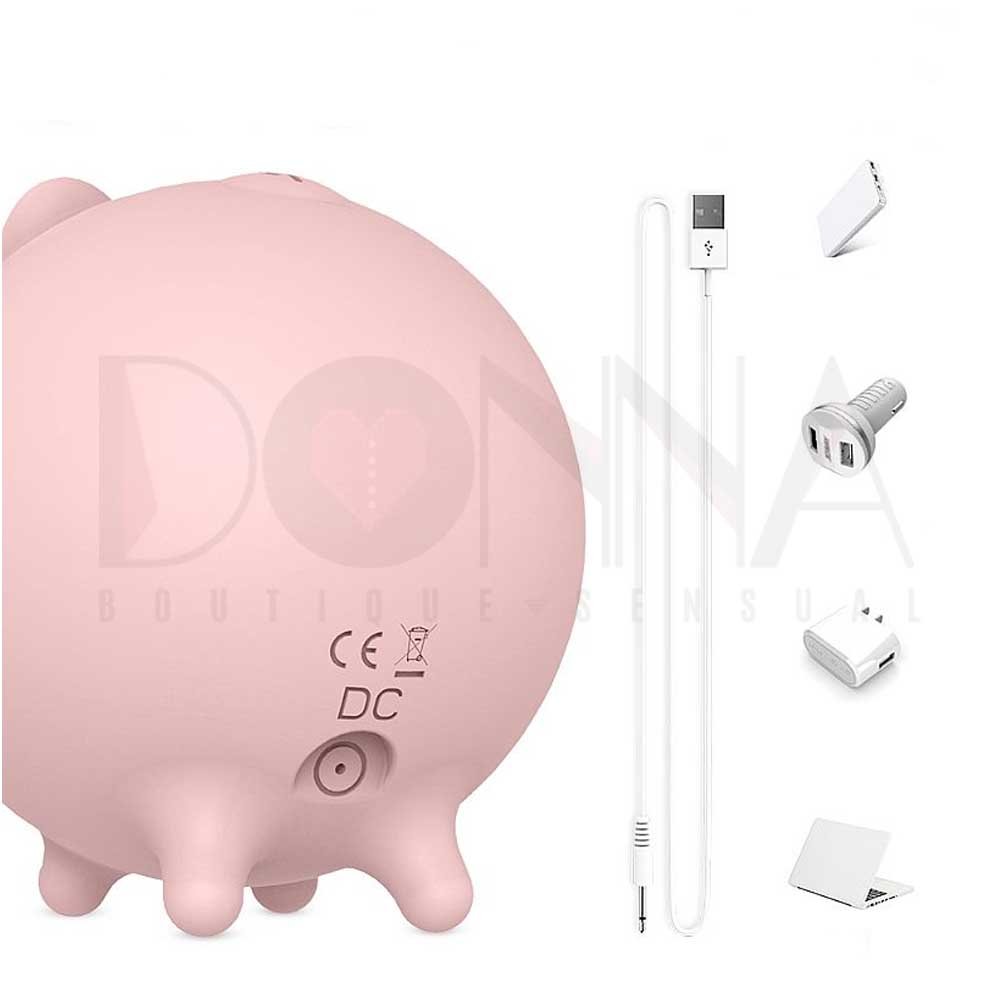 Piggy: é um maravilhoso massageador clitoriano em formato de porquinho, perfeito para te levar ao seu orgasmo mais intenso, podendo ser usado na área vaginal, mamilos ou até mesmo na orelha. Sua principal função é pulsar, ele possui 9 modos de vibrações intensas te para te garantir o melhor prazer. Sem falar no seu design, um formato fofo que não entrega o que faz, pois ninguém imaginará o que essa fofura faz, mas não se engane, pois essa belezinha faz mágica.