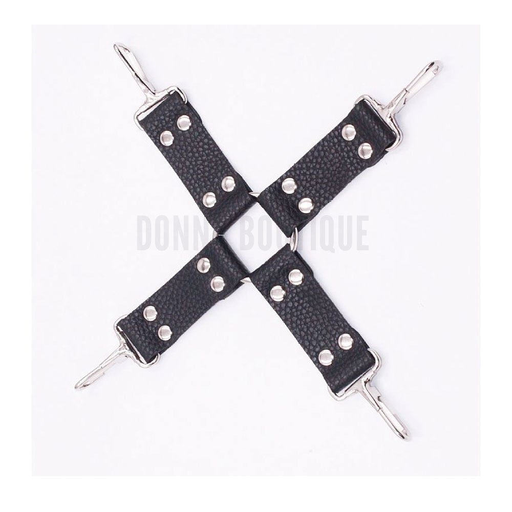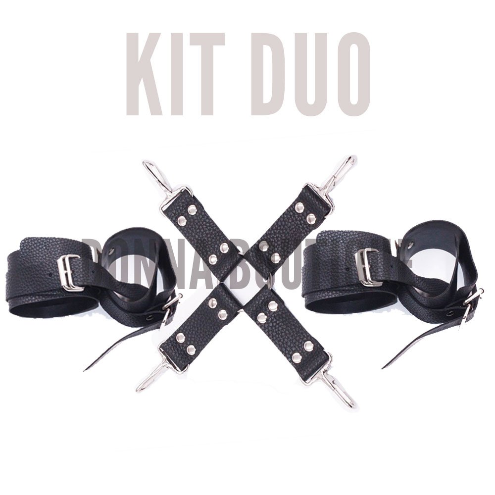 Algema dupla para imobilização completa de mãos e pés, em couro sintético.