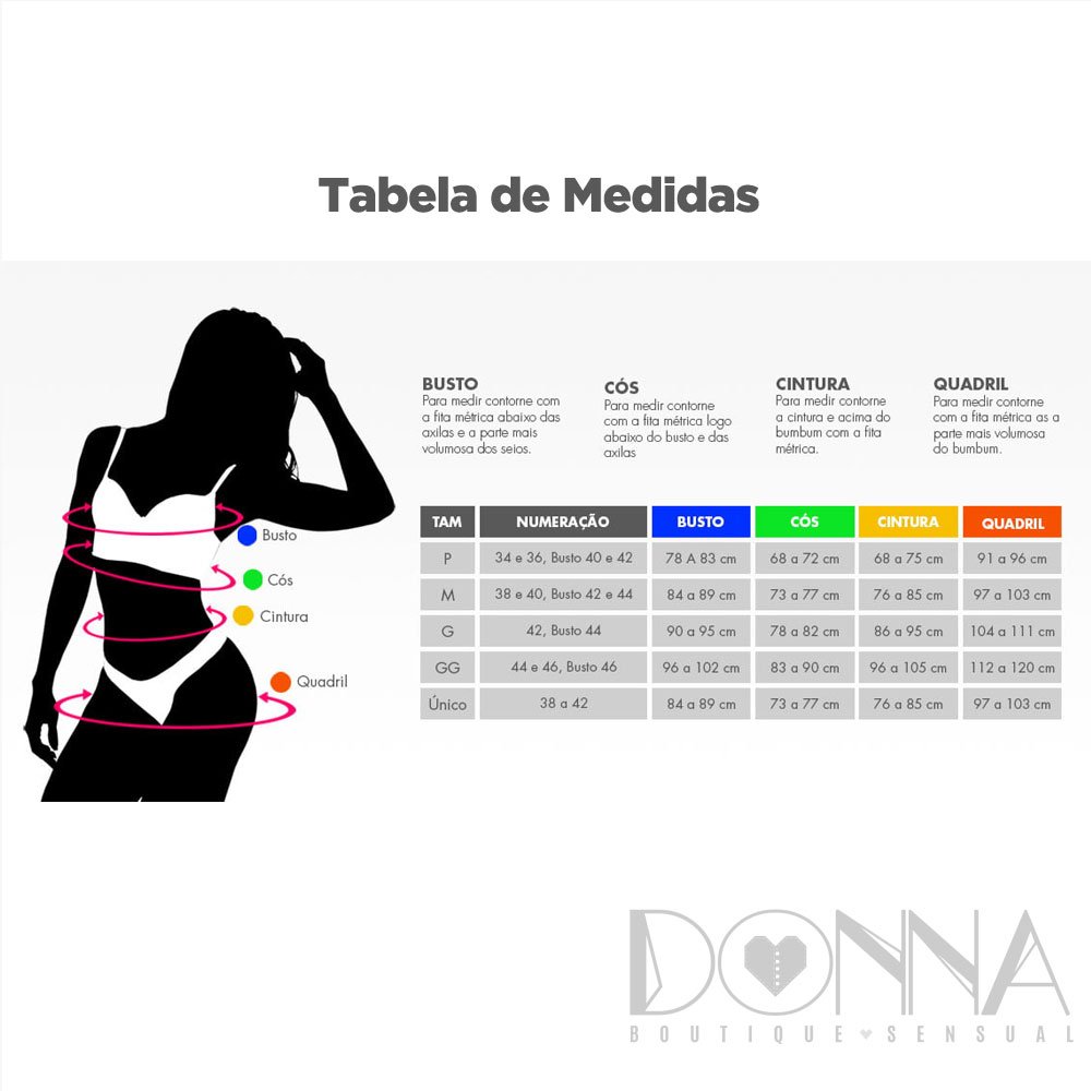 Composição: Renda: 85% Poliamida 15% Elastano/ Cetim 100%Poliester